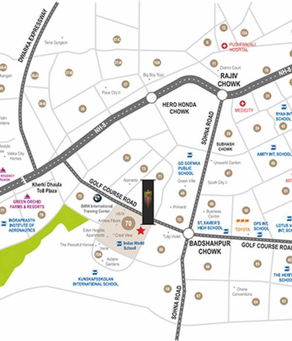 Elan Empire is strategically located in one of the busiest road in Gurgaon and is at a walking distance from Sohna Road. The location enjoys excellent connectivity through Golf Course Extension Road and Southern Peripheral Road. You can reach Delhi and Faridabad through NH- 8. Indira Gandhi International Airport is 15 Km away from the location.