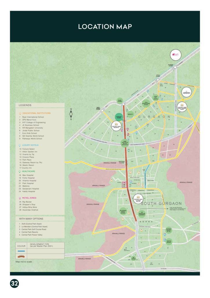 Central Park Flower Valley Flamingo Floors is ideally located on the foothills of Aravalli and offers you a healthy and pollution free life. These residencies offer easy connectivity with other parts of the city. You will get access to all the civic necessities that are required for leading healthy living. The project enjoys seamless connectivity with Golf Course Extension Road (10 minutes driving distance) Gurgaon. Indira Gandhi International Airport is 30 km away from the location. The location is surrounded by premium residential projects, leading retail segment, educational institutes, healthcare facility and hotels.